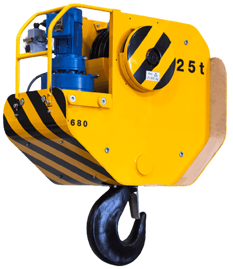 Hook blocks / snatch blocks with motorized rotation for lifting and having accurate positioning of type of loads without manual intervention. Usually, on standard overload cranes the rotation is done manually by the operator, but in many situations, were precision and safety is needed, the use of a hook block with motorized rotation it becomes a must. Security: The operator chooses the most convenient and safe position and itinerary without getting close to the load avoiding this way accidents when these operations are made.